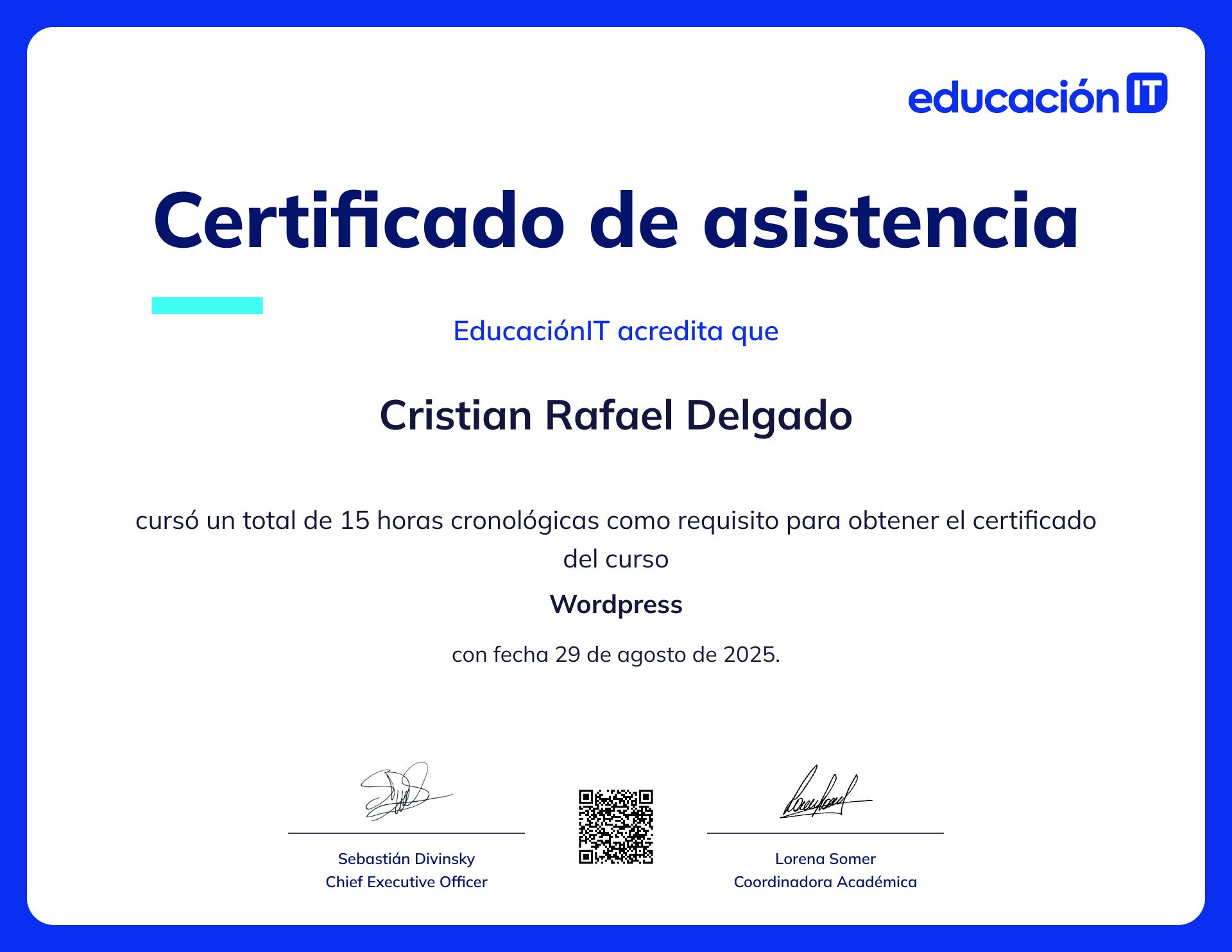 EducaciónIT reconoce la validez de este certificado por haber cumplido los requerimientos necesarios para su obtención.