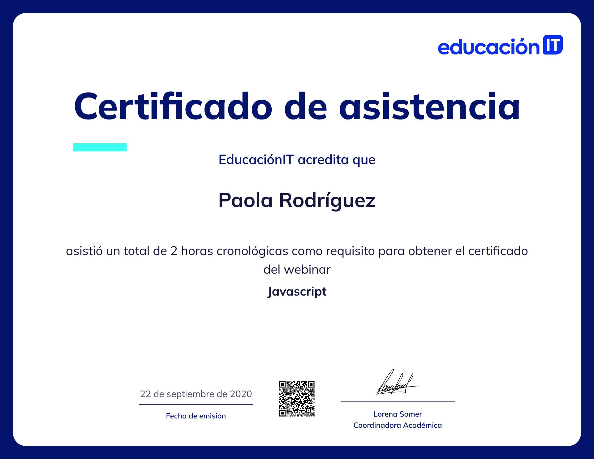 EducaciónIT reconoce la validez de este certificado por haber cumplido los requerimientos necesarios para su obtención.